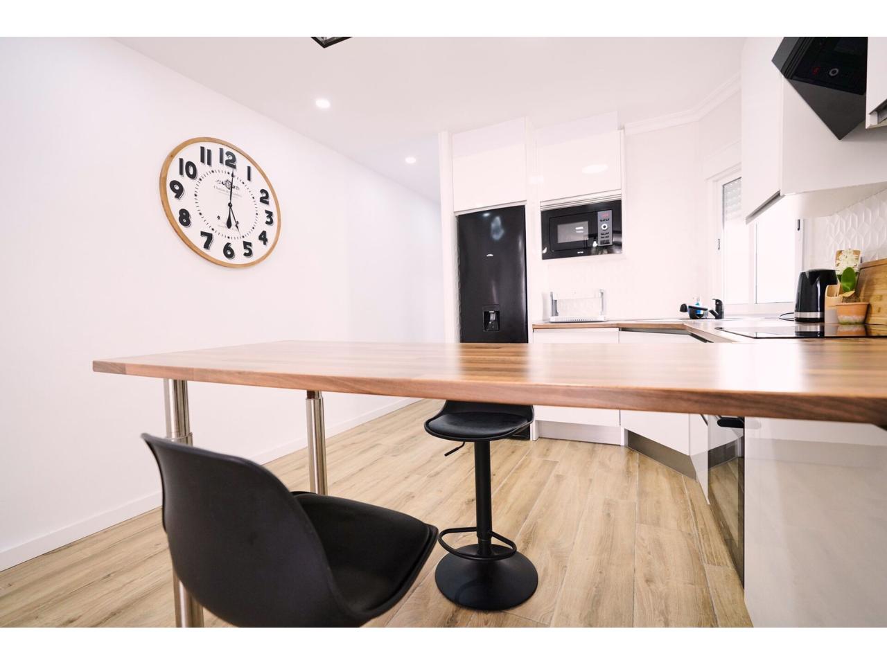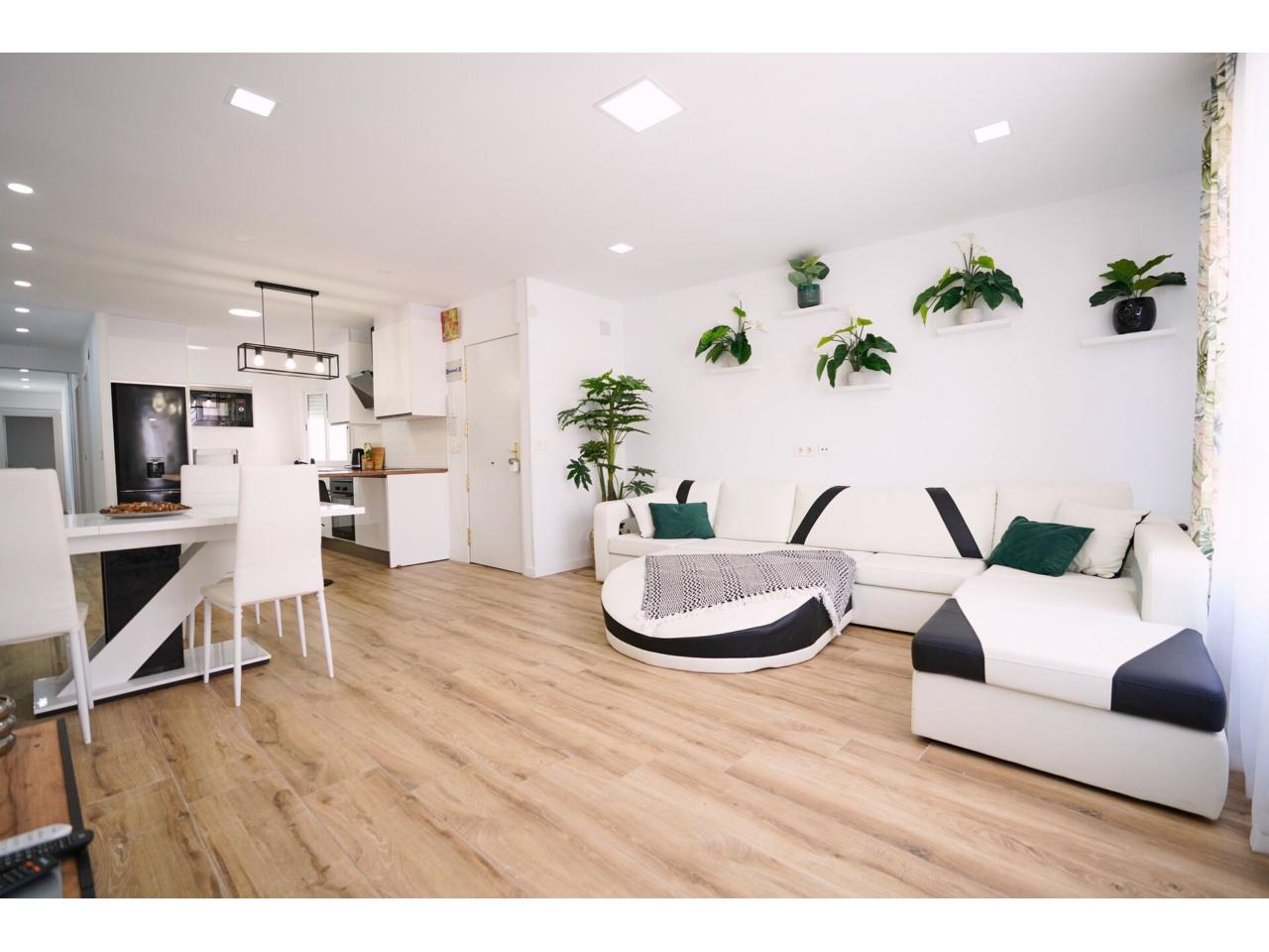 Piso completamente reformado con tres dormitorios, un baño completo con ducha, amplio salón-comedor y cocina de concepto abierto. Es una 4º planta, sin ascensor. Dispone de splits de aire acondicionado frío/calor, ventanas de aluminio, suelo porcelánico imitación parquet. Situado céntrico. Con licencia turística.